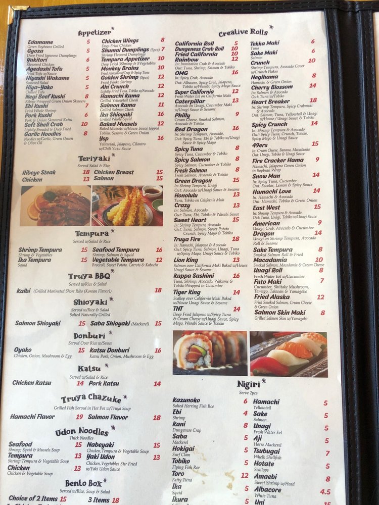 Truya Sushi in Santa Clara, CA offers a wide variety of sushi options, teriyaki dishes, and tempura items. Their menu includes appetizers like edamame, gyoza, and yakitori, as well as teriyaki options such as ribeye steak and salmon. Customers have praised the fresh and flavorful fish, as well as the friendly and accommodating staff. The atmosphere is described as welcoming and the service quick and efficient. Reviewers recommend trying the sushi donburi and the special rolls. Truya Sushi is known for its reasonable prices, delicious food, and kind chefs and waitstaff. If you're looking for a great sushi spot with a cozy vibe, Truya Sushi is a must-try.